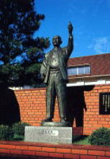 右の写真は教会前に立つユスト高山右近像です。